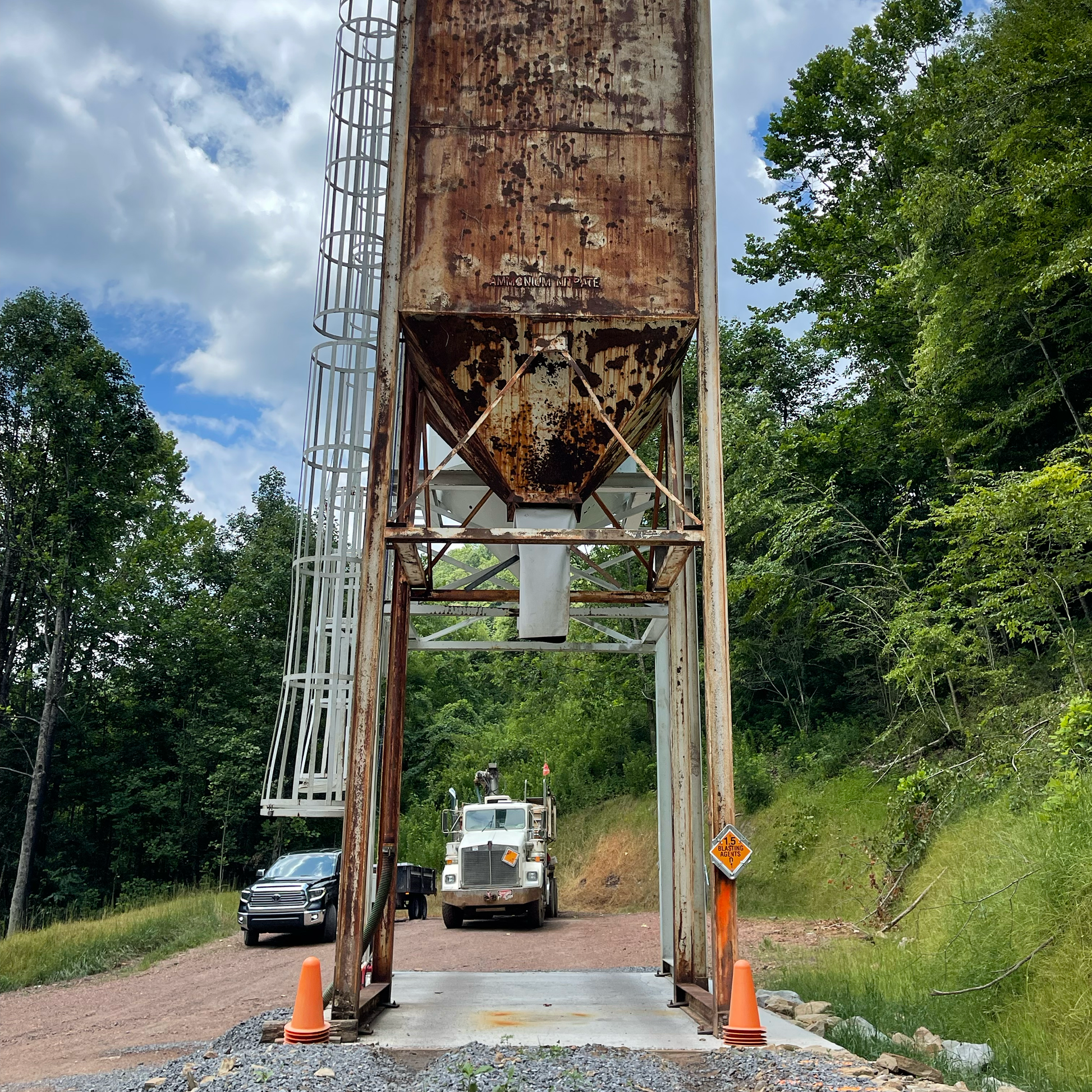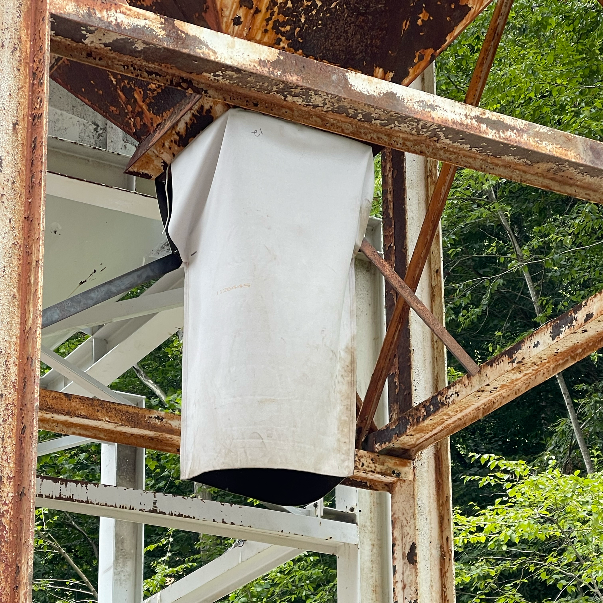 Vinyl skirt that easily attaches to your ammonium nitrate bin for powder deployment.